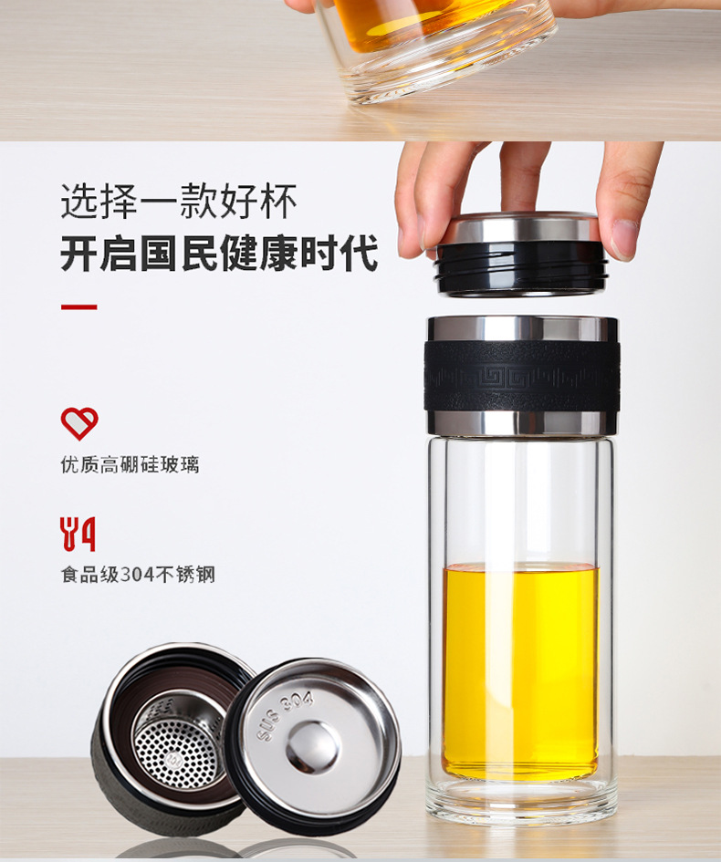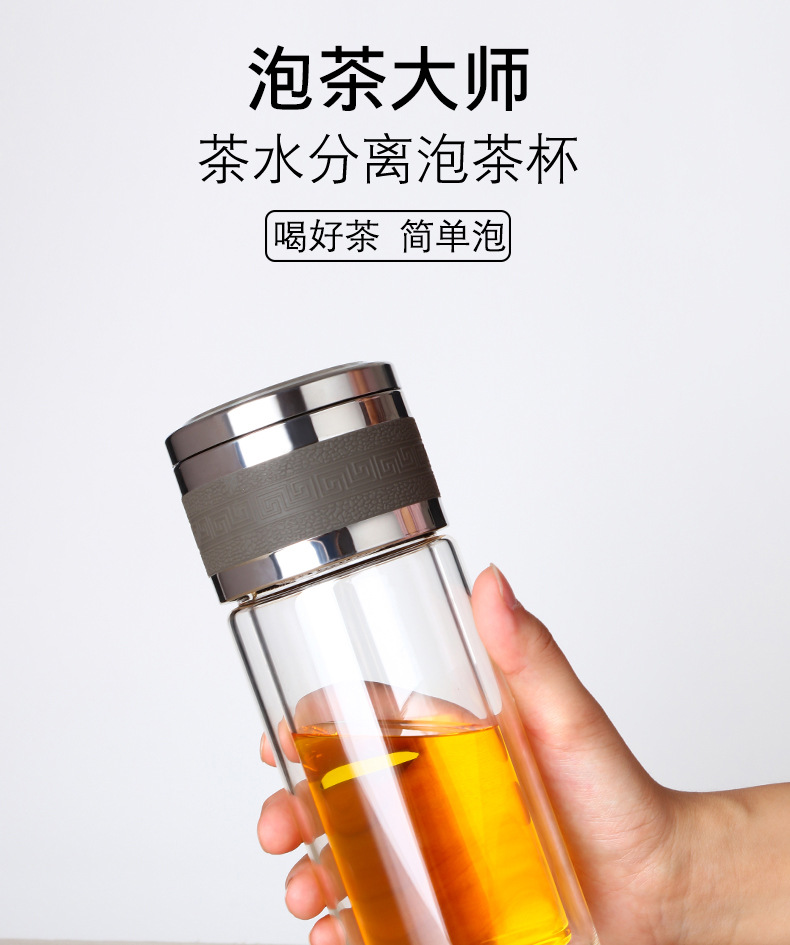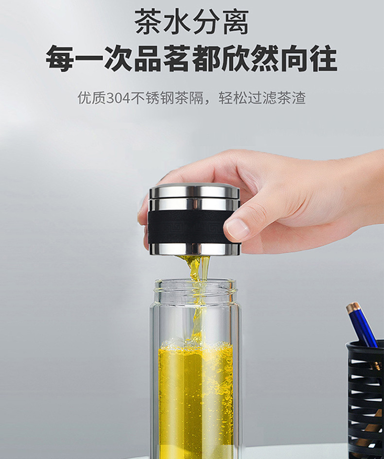 新款茶水分離泡茶杯雙層透明玻璃杯車載過濾水杯便攜辦公杯子定制