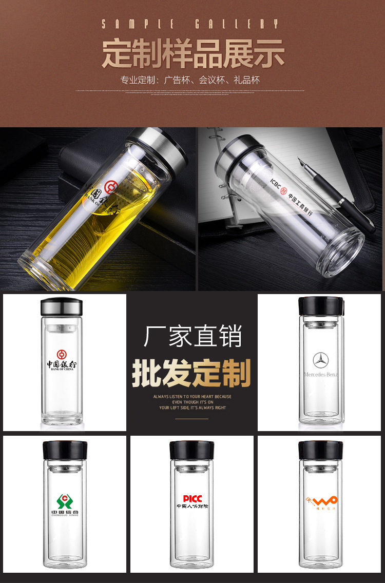 雙層厚底透明玻璃杯商務禮品高硼硅水杯廣告杯批發定制logo
