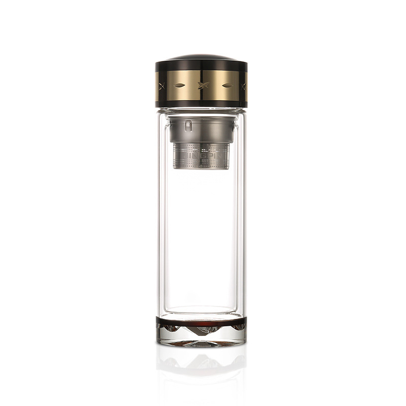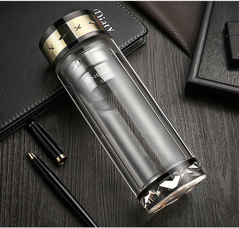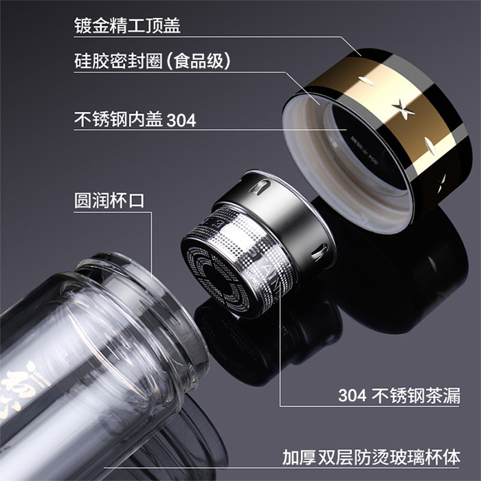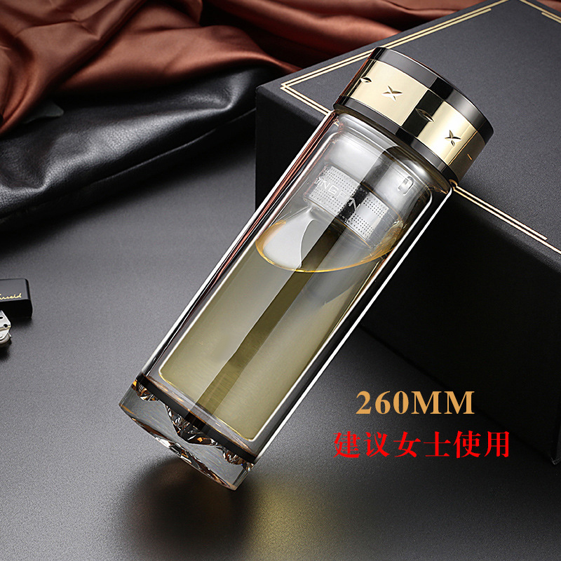 水晶雙層玻璃杯商務辦公便攜泡茶男女泡茶大容量LOGO