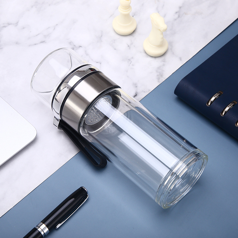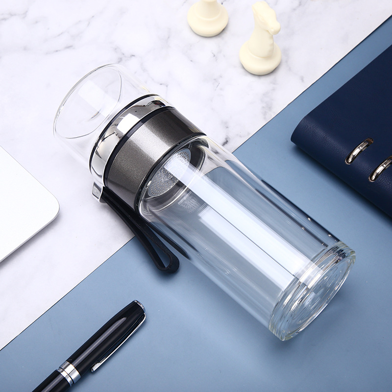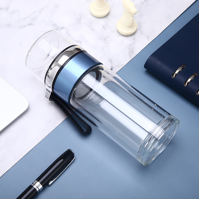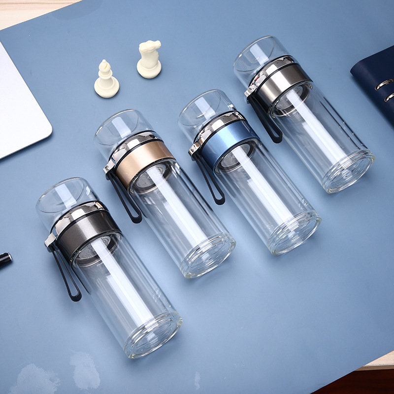 夏季便攜雙層玻璃杯泡茶水分離杯子辦公商務廣告禮品批發(fā)定制LOGO