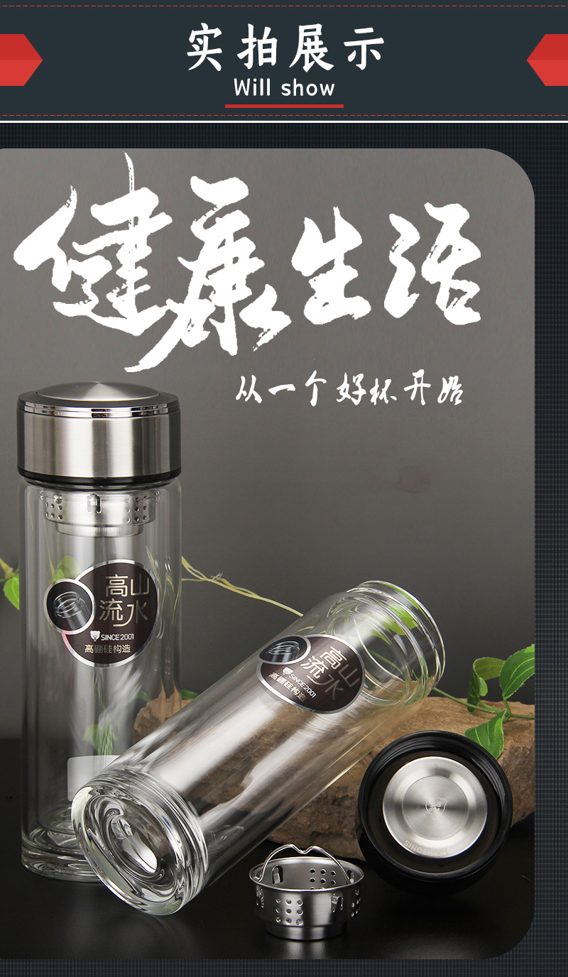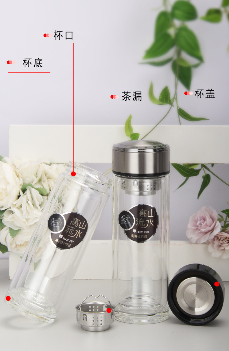 廠家批發(fā)定制LOGO 雙層高硼硅杯 厚底水晶杯