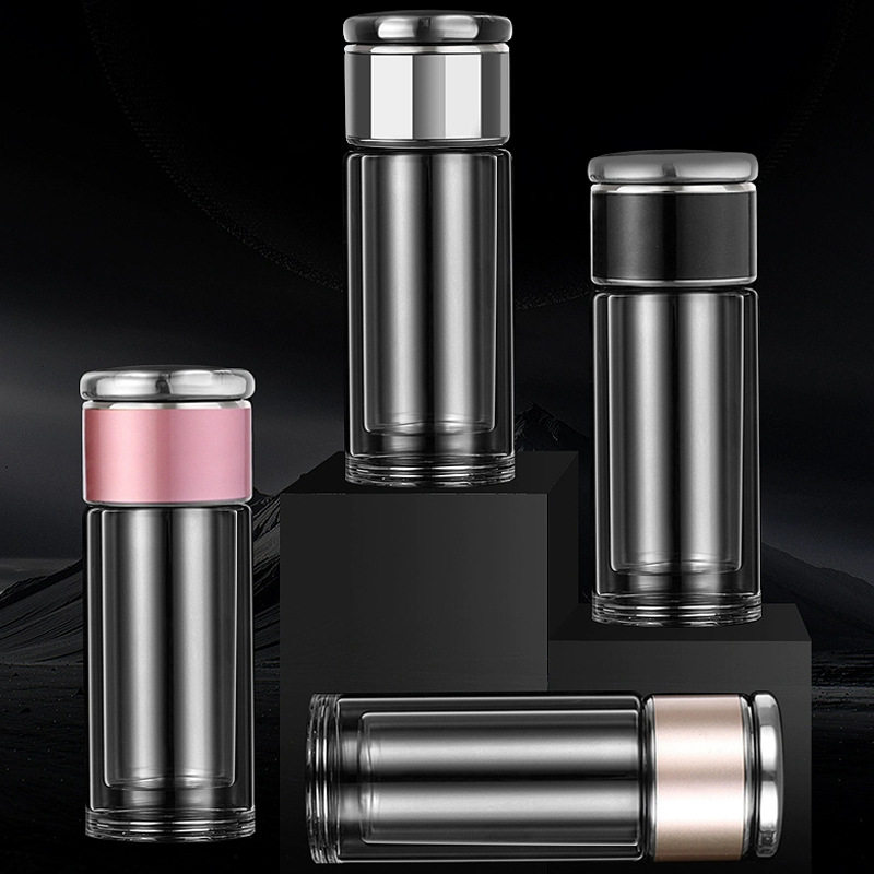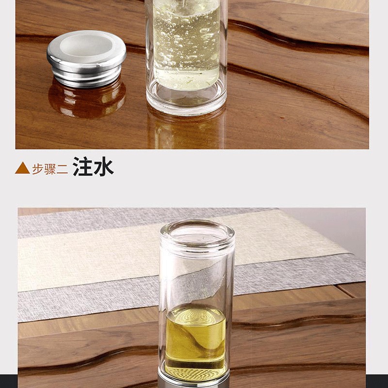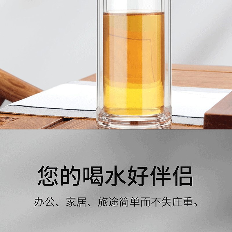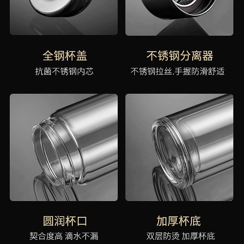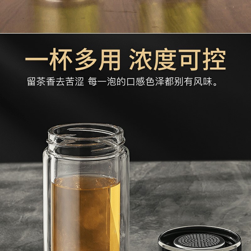 網(wǎng)紅茶水分離杯雙層玻璃杯家用透明玻璃水杯商務禮品茶杯隔熱