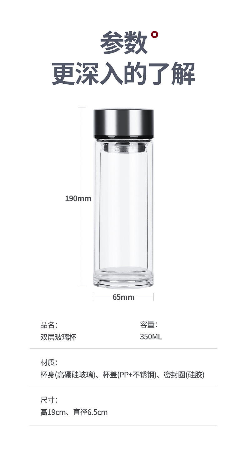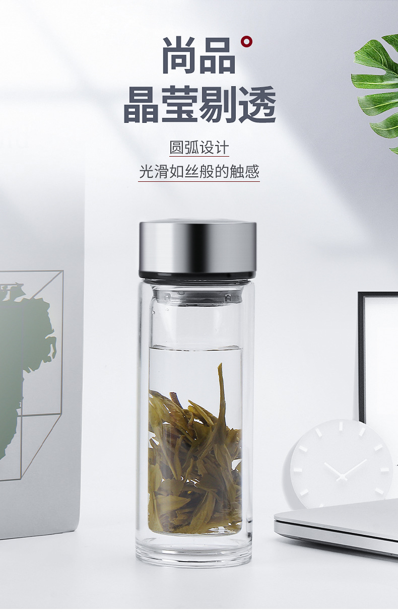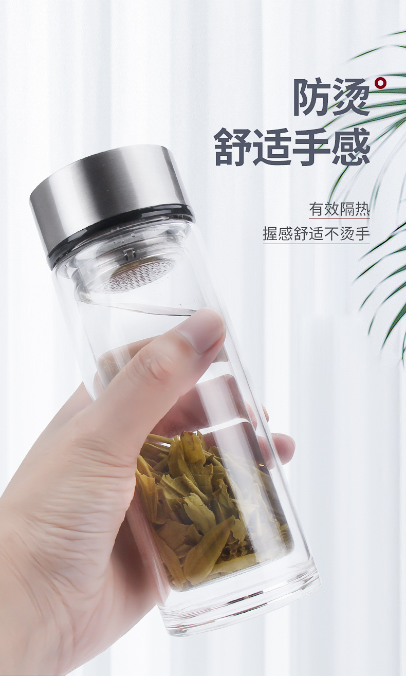 新款商務辦公雙層加厚玻璃杯創意廣告杯禮品水杯定制logo水杯批發