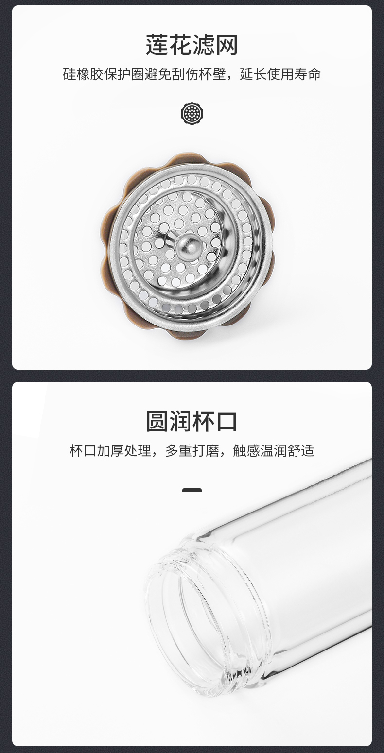 希諾雙層玻璃杯茶水分離水杯男家用透明過(guò)濾泡茶杯子高檔送禮商務(wù)