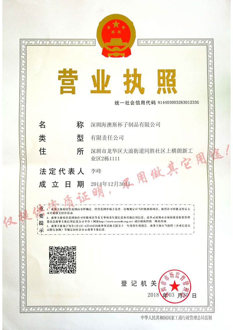深圳海澳斯杯子制品有限公司專注杯子的研發(fā)生產(chǎn)定制OEM為一體的集團(tuán)化公司,廠房占地面積30萬平方米,注冊(cè)資金506萬,專業(yè)專注杯子20年,承接德國(guó)日本的和國(guó)內(nèi)的開模訂單,與世界知名商超都保持良好的合作關(guān)系。
