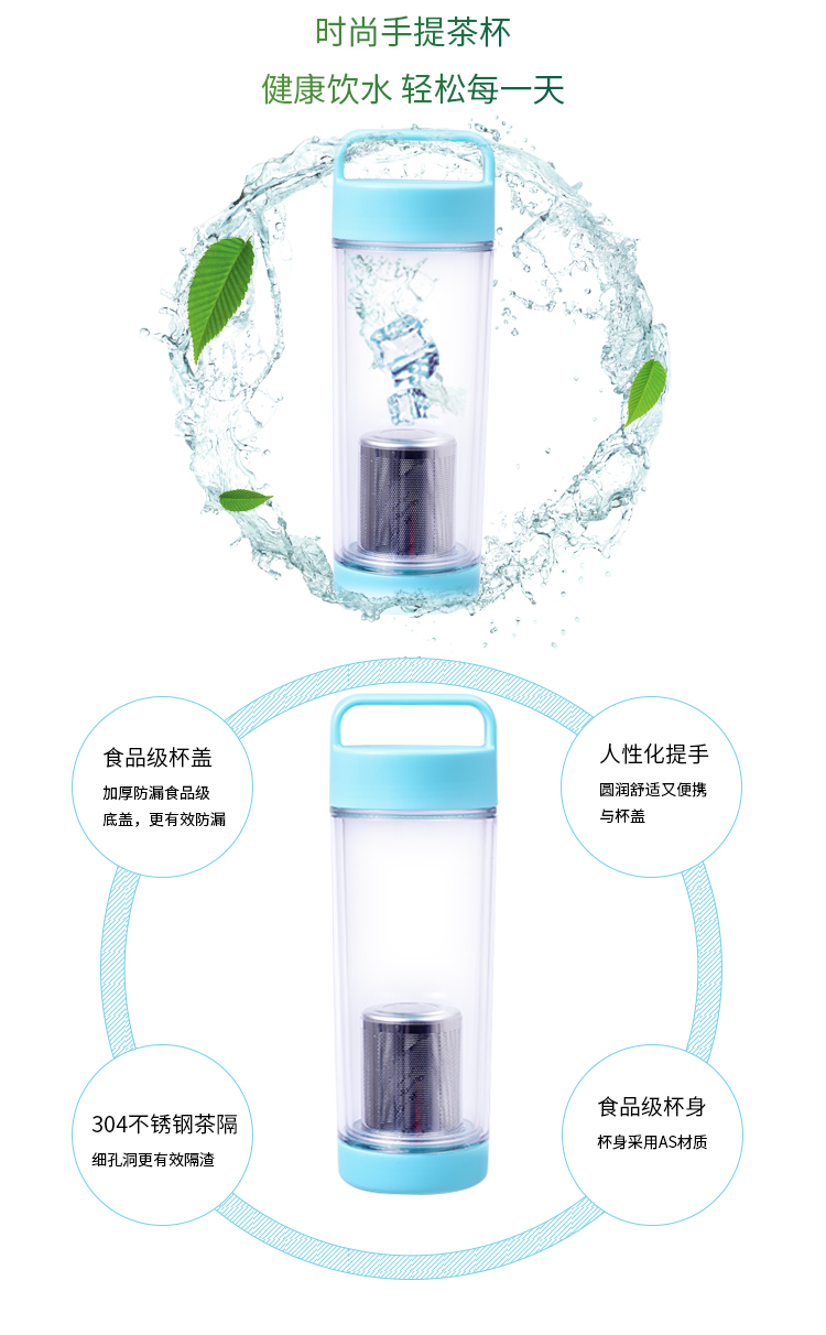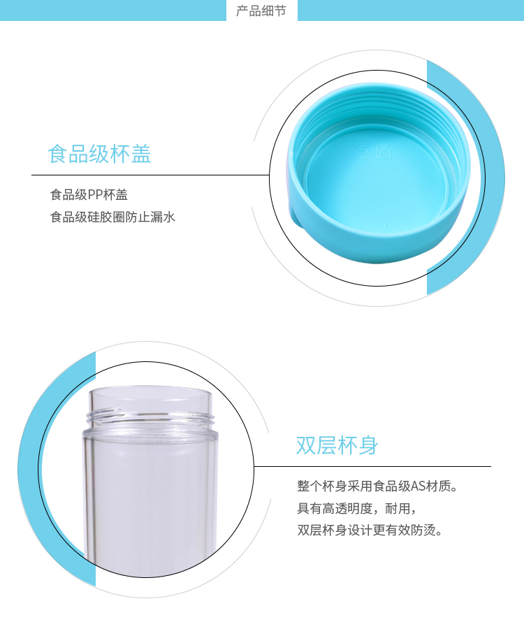 水杯大容量戶外運動水壺 塑料杯子 隨手杯 學生杯子 創意便攜防漏水杯 天藍色 650mL-800ml
