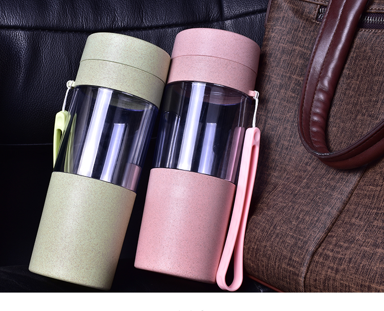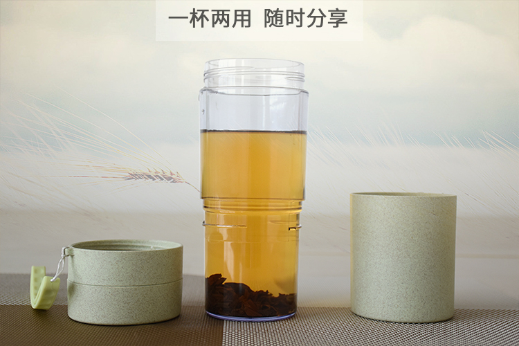 防燙塑料杯子 雙層學(xué)生運(yùn)動(dòng)水杯 辦公杯 隨手杯帶茶隔 480ml 480ml