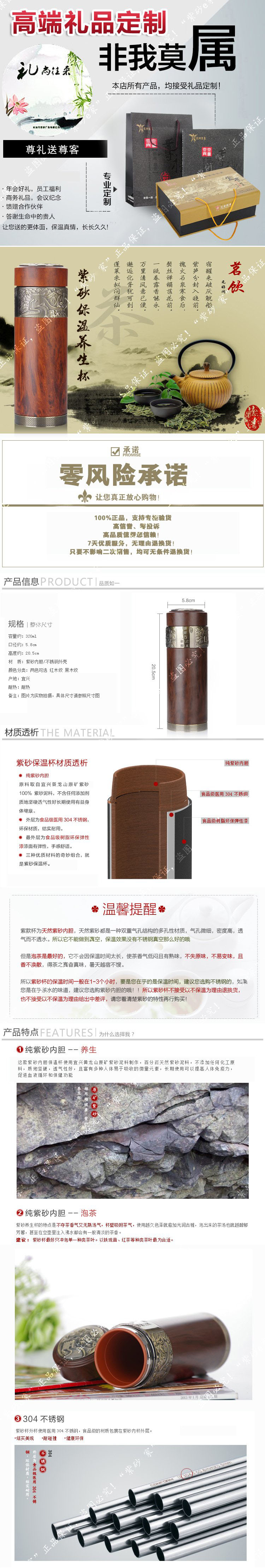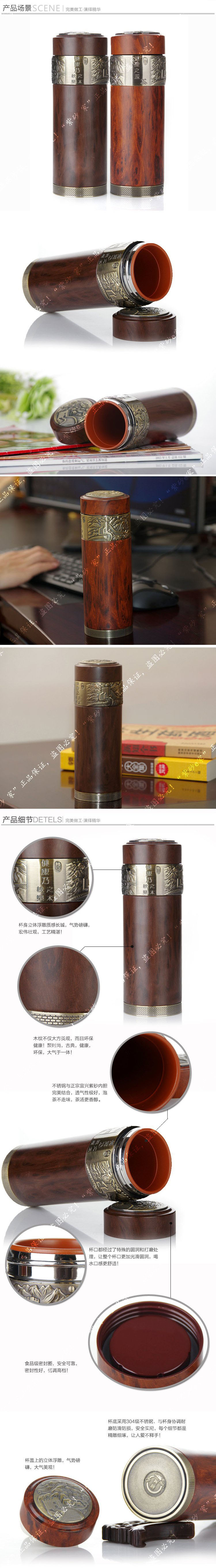 宜興紫砂保溫杯 木紋長(zhǎng)城紫砂禮品杯